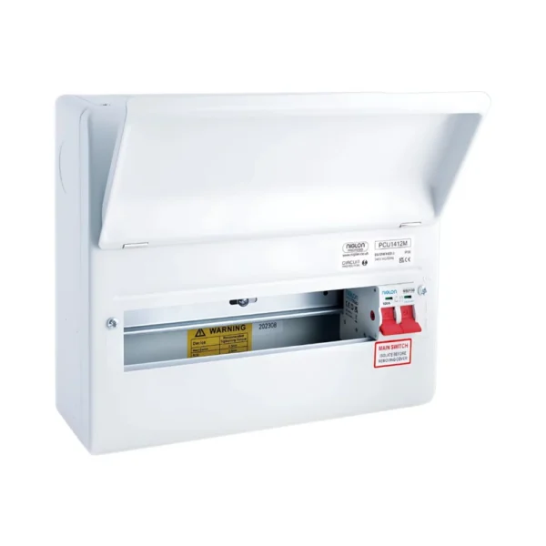 The Niglon PCU1412M is a 12-way metal consumer unit, part of the Protego series designed for cleaner installs, more flexibility, and reliable performance in domestic environments. Featuring a total of 14 modules with 12 usable ways, this unit offers additional space for future expansion or accessories like SPDs, RCBOs, or relays.