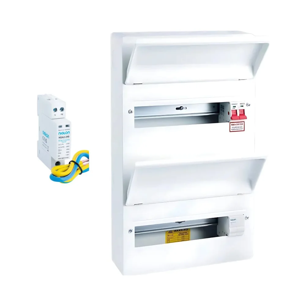 Built for convenience, the 23 Way Niglon Protego SPD Consumer Unit combines a Niglon Protego main switch consumer unit with a matching Type 2 surge protection device — both engineered by Niglon to work seamlessly together for dependable surge defence.
