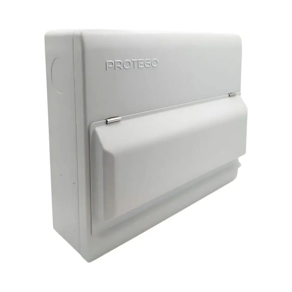 This model is part of the Niglon Protego Consumer Units line, bringing installer-friendly features such as a built-in spirit level, reinforced 1.2mm curved lid, and varied knockout positions. Additional benefits include raised DIN rails for better cable management, square rear knockouts, and strong cable retention with large terminal screws.