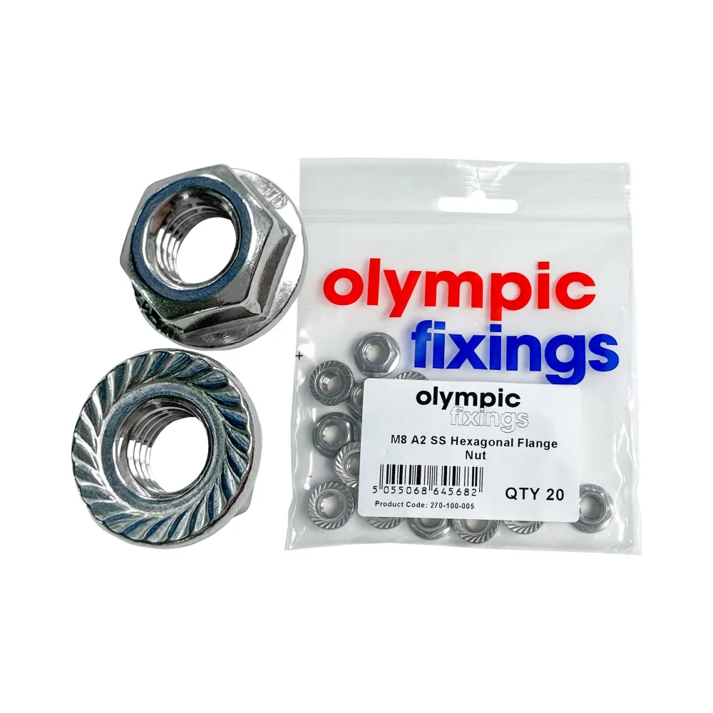 Olympic Fixings A2 Stainless Steel Hexagonal Flange Nut with Serration – M8 – 20 Pcs