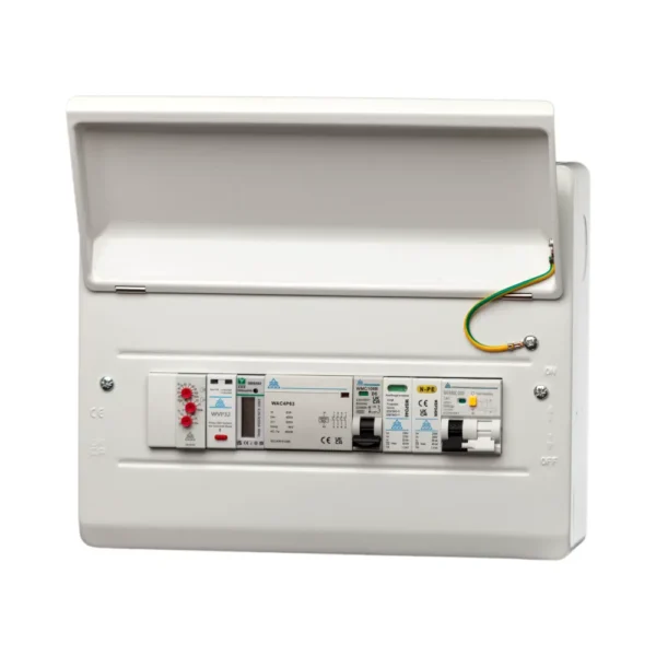 - Components: Includes C40 RCBO, relays for load management, kilowatt-hour meter, Type 2 SPD, and PEN fault detection.
