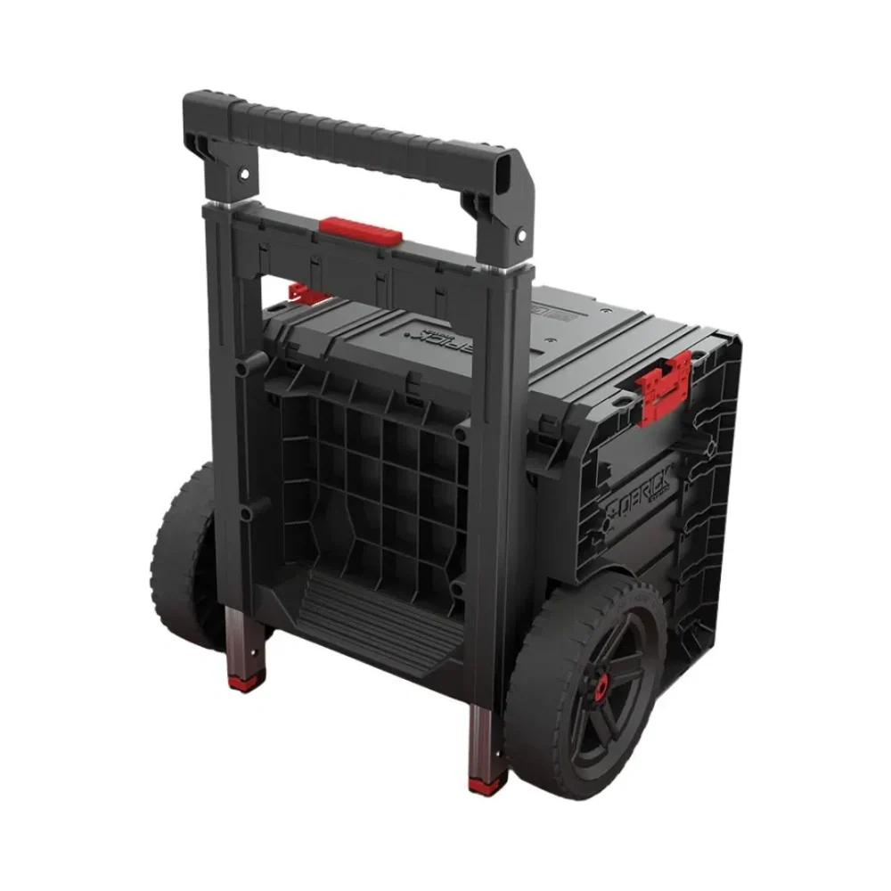 The Qbrick System PRO Cart 2.0 Plus Drawer 3 is a professional-grade mobile tool cart designed for demanding environments. With its durable 9-inch wheels wrapped in thick rubber and a reinforced foot platform, this cart delivers reliable performance on uneven terrain. Its removable telescopic handle provides easy control, even in tight areas, while the robust polyamide latches and connectors ensure a secure and modular build.
