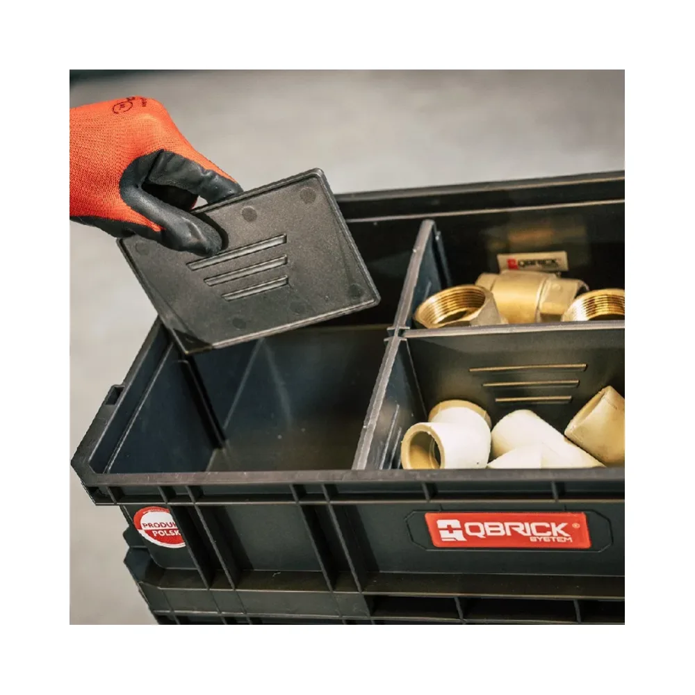 The Qbrick System TWO QB-TWO-BOX100-F is a versatile, durable box designed for carrying hand tools, building materials, and various storage needs at home or in the garage.