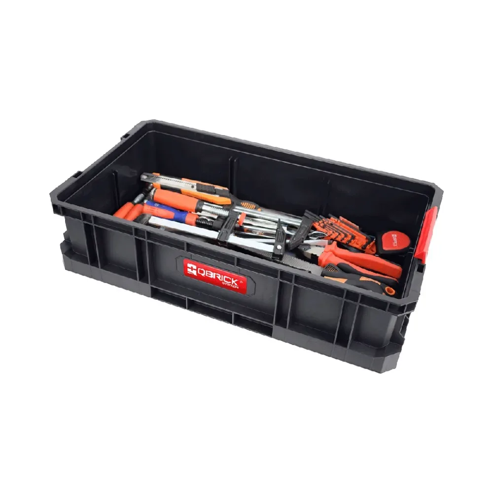 The Qbrick System TWO QB-TWO-BOX100 is a modular and robust box designed to carry hand tools, building materials, and for storing various items at home or in a garage.