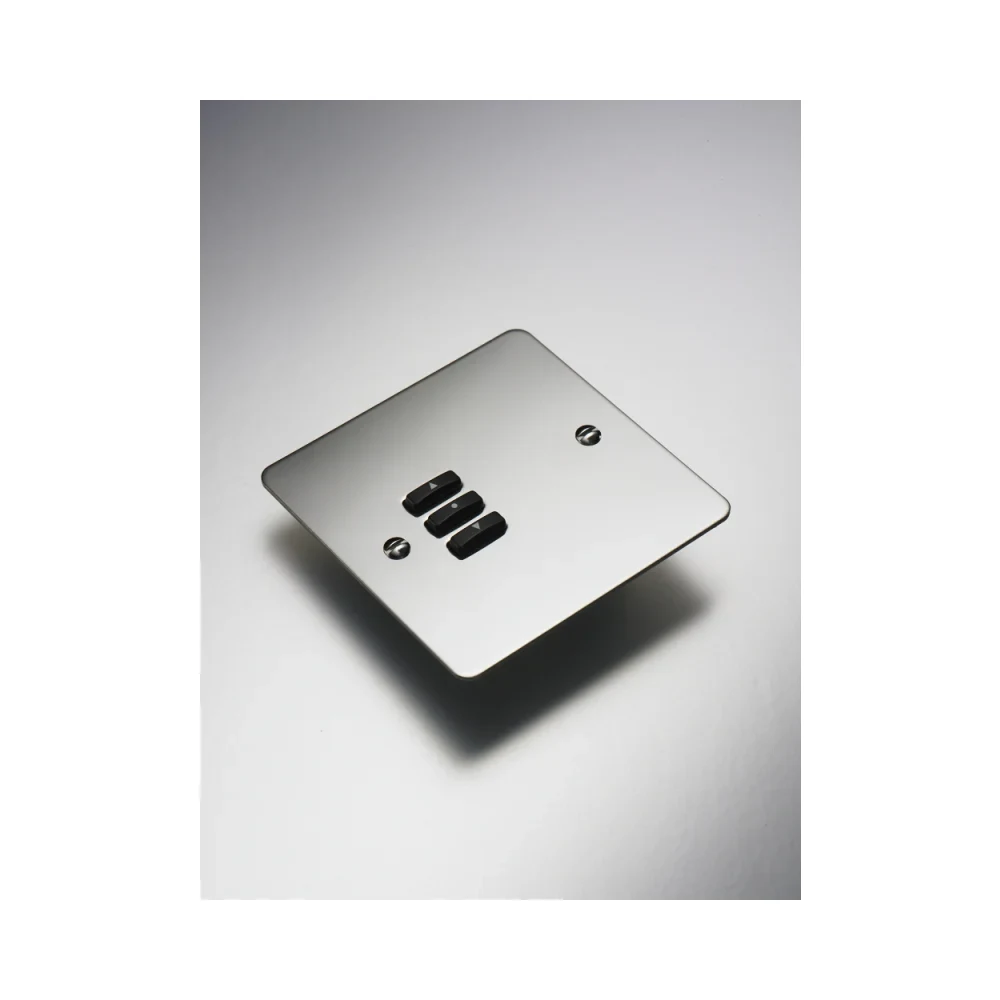 Rako Cover Plate Kit for Classic Wired Control Modules – Single Gang 3-Button – Flat Plate Flush/Surface Mounting – Mirrored Stainless Steel