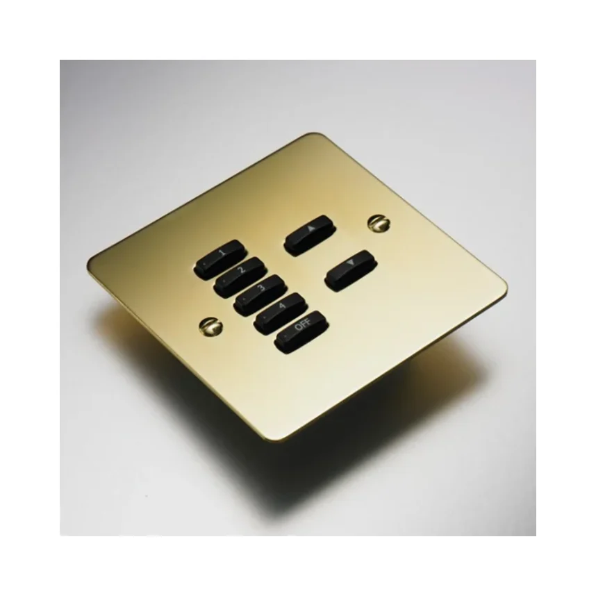 Rako Cover Plate Kit for Classic Wired Control Modules – Single Gang 7-Button – Flat Plate Flush/Surface Mounting – Polished Brass