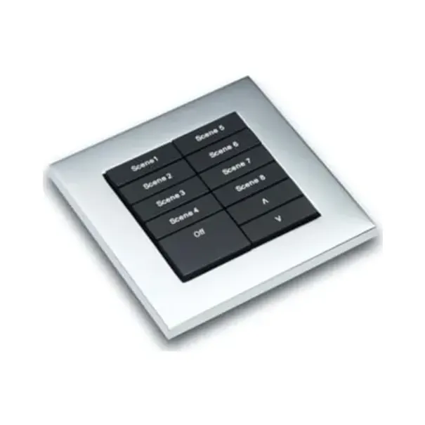 This polished chrome cover plate is perfect for enhancing the look of your Rako control panels, combining both functionality and a stylish finish.