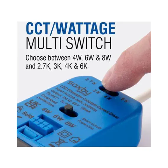 The Saxby 112551 IP65 Fire Rated Dimmable Downlight is a powerful and flexible LED fitting designed for modern homes and commercial interiors. This model includes selectable wattage (5W or 7W) and four colour temperature options, allowing it to adapt to a wide variety of spaces.