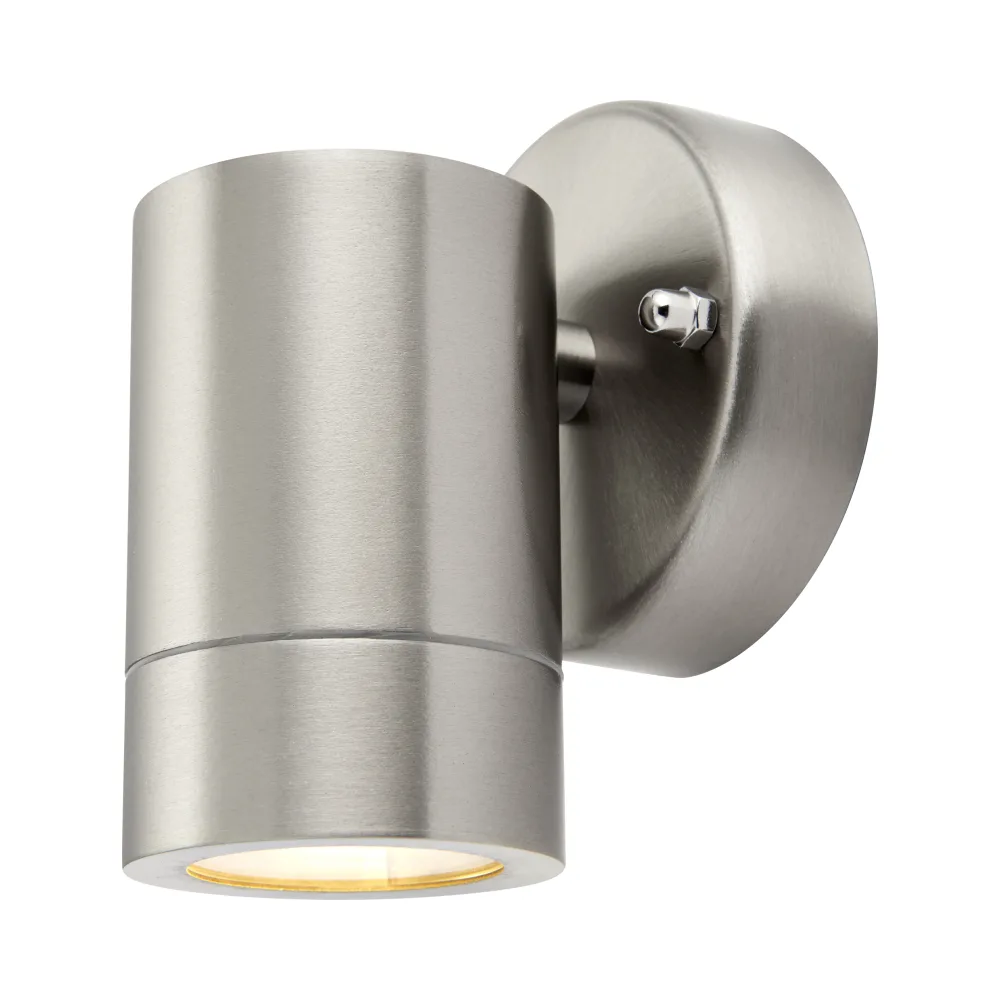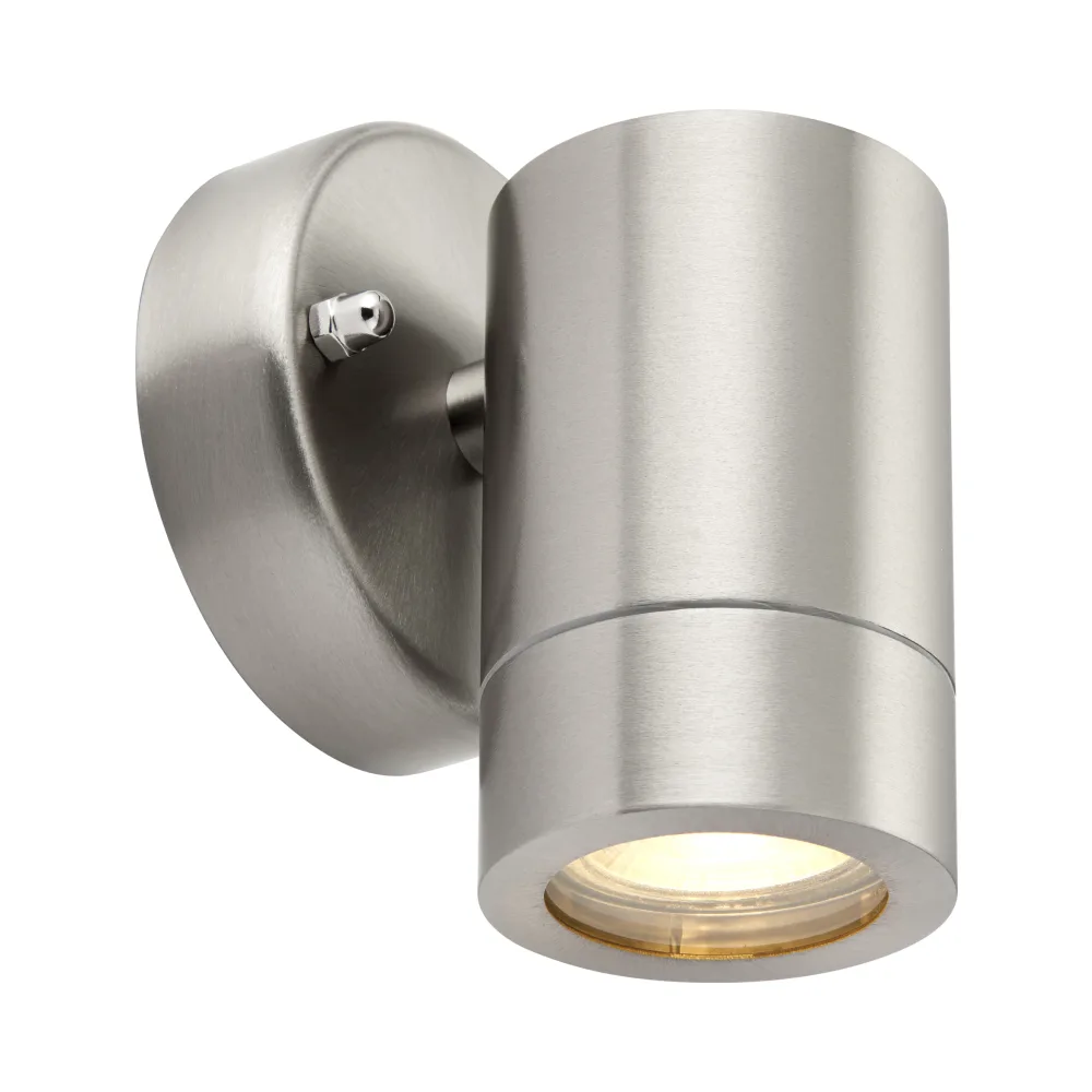 The Saxby 13801 Palin Brushed Stainless Steel IP44 1 x GU10 Wall Light delivers reliable outdoor lighting with a sleek finish, IP44 protection, and GU10 lamp compatibility—ideal for modern entrances, patios, and exterior walls.
