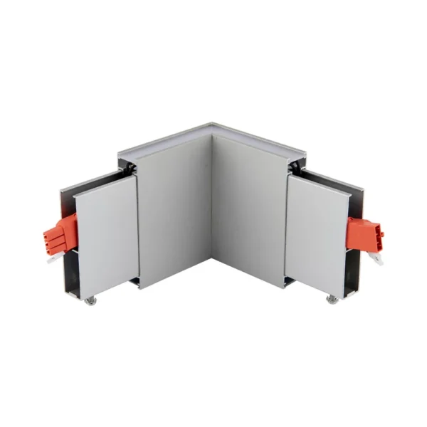 Constructed from durable silver anodised aluminium alloy, this corner connector enhances the modern and professional look of lighting installations. It supports a maximum connect power of 400W, making it ideal for large commercial and office lighting projects.