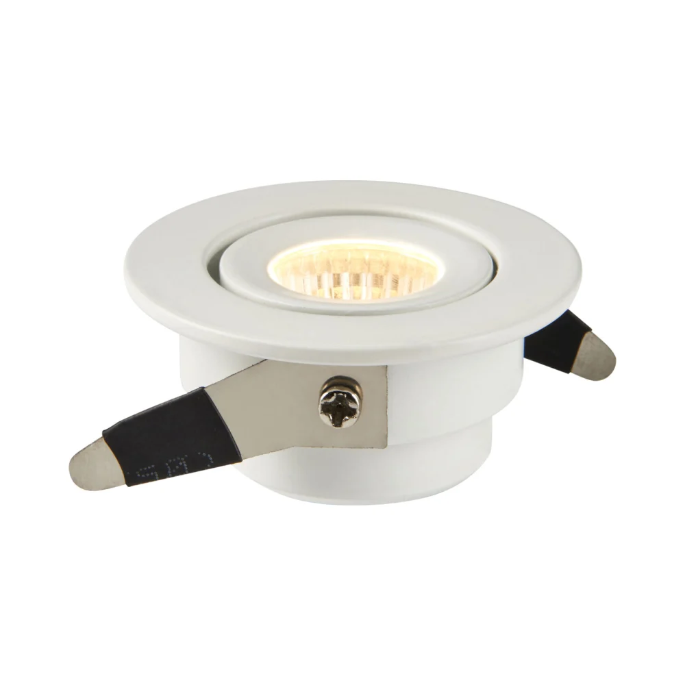 A compact, tiltable 4W LED downlight with warm white output and clean recessed design. Ideal for directional indoor lighting with dimmable functionality available via optional driver.