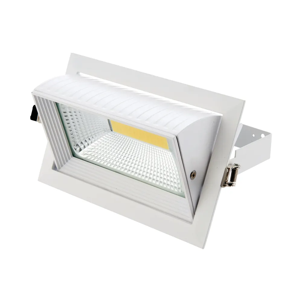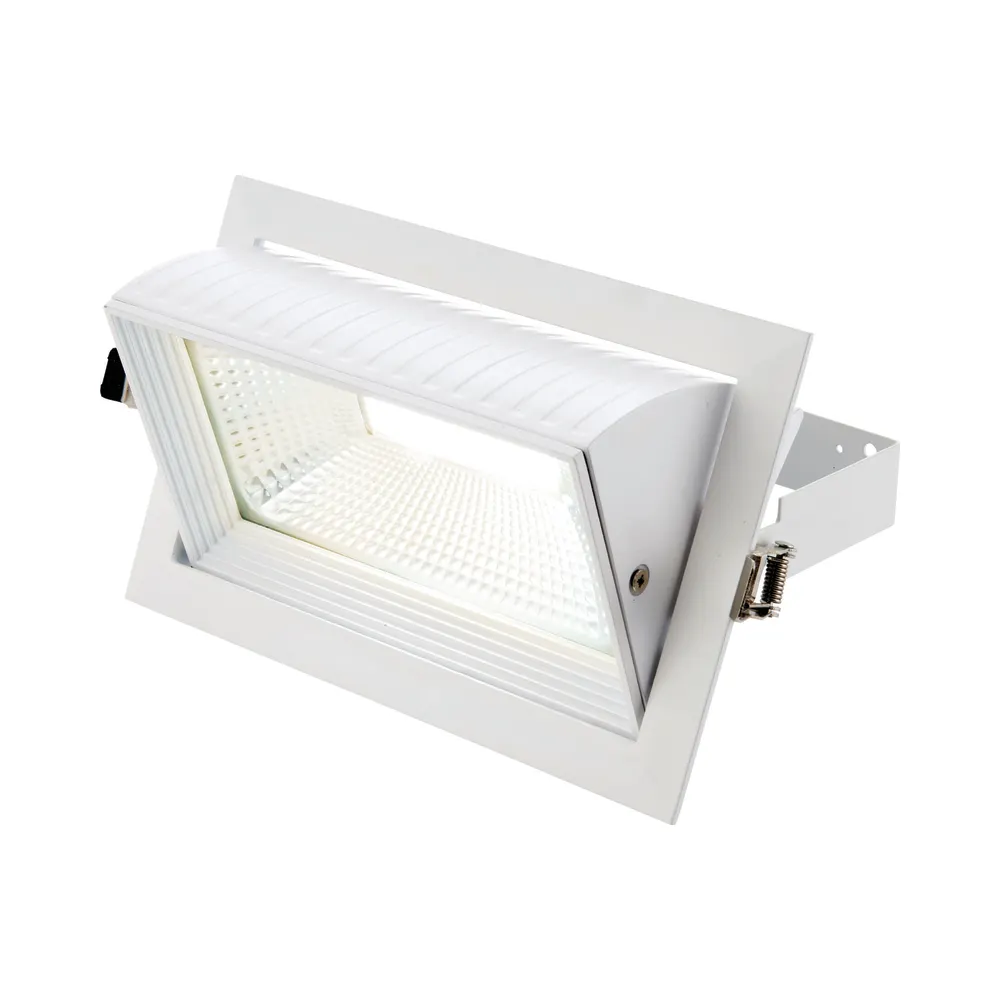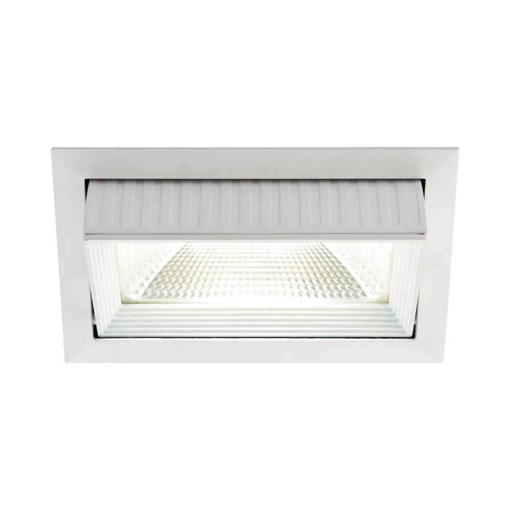The Axial is a rectangular high performance recessed light, ideal for commercial spaces, but particularly retail as their light projection is changeable by up to 60 degree