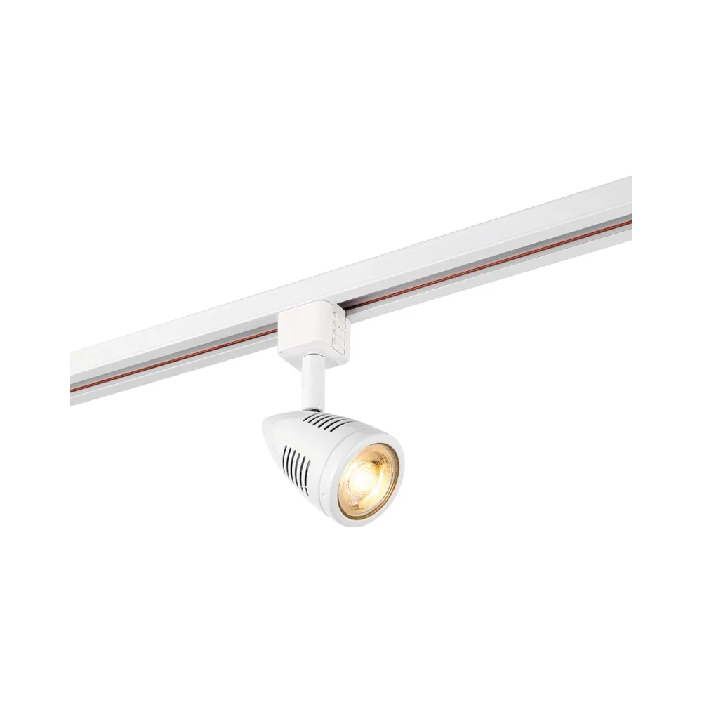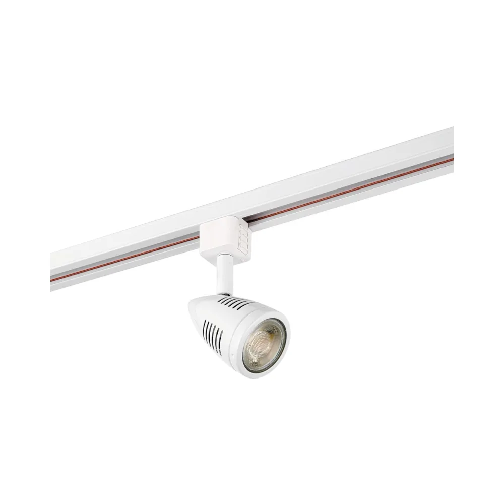 The Bullett is a multidirectional mains track GU10 spotlight in a gloss white finish. It features distinctive decorative markings on the outside and a classic bullet shape. Suitable with Saxby single circuit track system and compatible with LED lamps.
