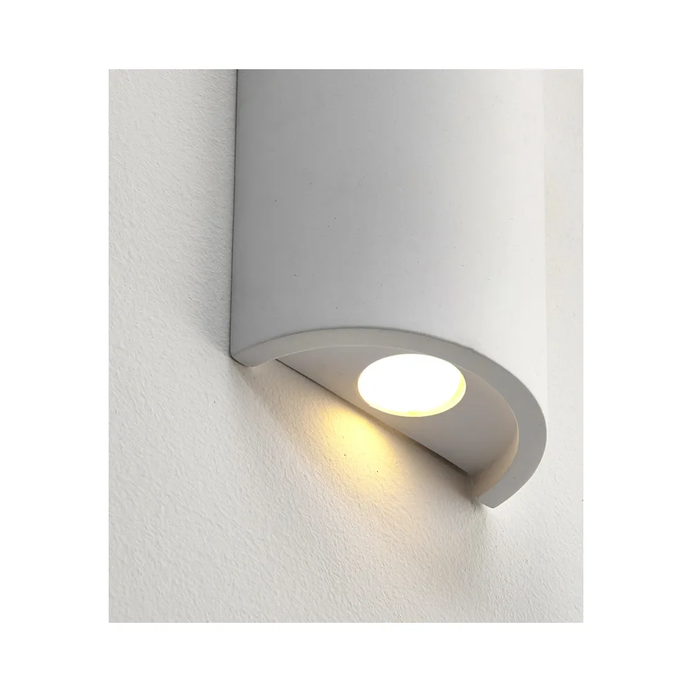 The Crescent is a simple LED curved wall light with a white plaster finish. Can be painted to suit the decor of your room.