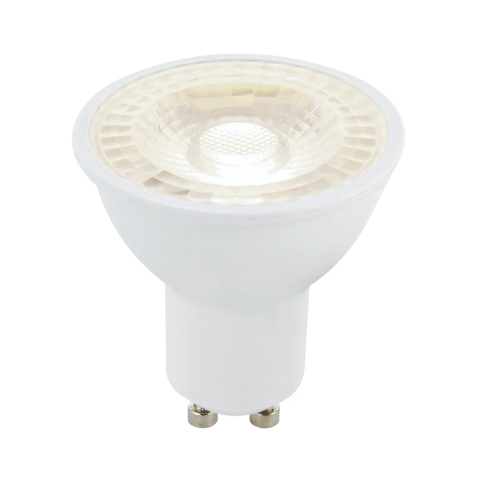 Dimmable Cool White LED: The Saxby GU10 6W lamp provides dimmable, cool white light with a 38° beam angle for focused, glare-reducing illumination. Durable and efficient for various settings.