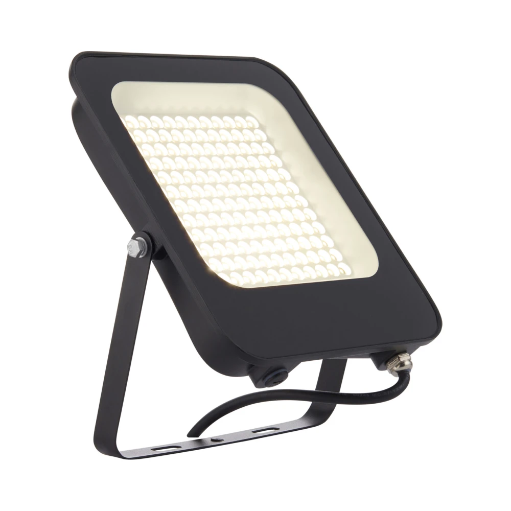 This floodlight is designed for quick installation, featuring a pre-wired cable and an adjustable mounting bracket for flexible positioning. Its slim design allows discreet installation on walls or ceilings, ensuring it fits seamlessly in any setting.