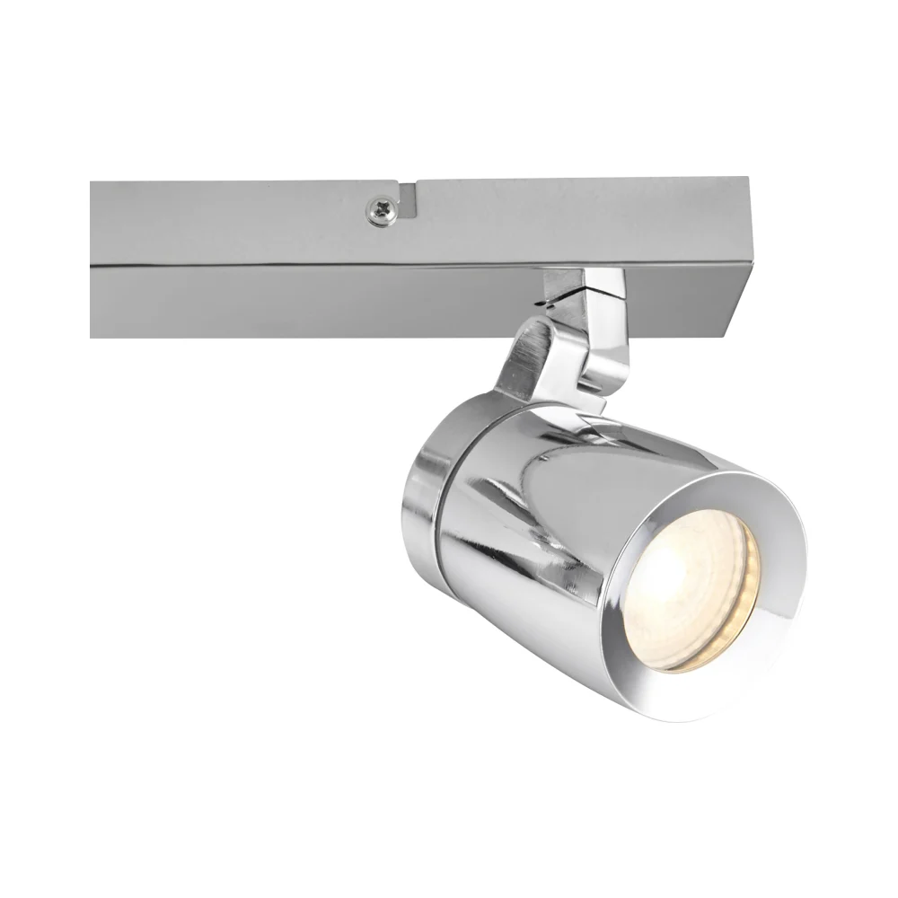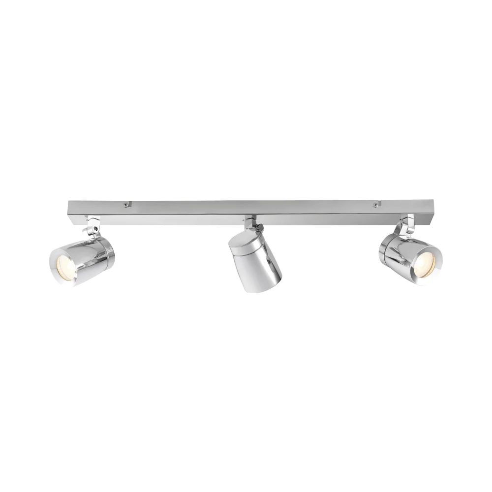 The stunning Knight triple spotlight bar combines a high quality polished chrome finish, sleek design and functional form. With its fully adjustable head, this item offers a flexible solution to your lighting requirements.