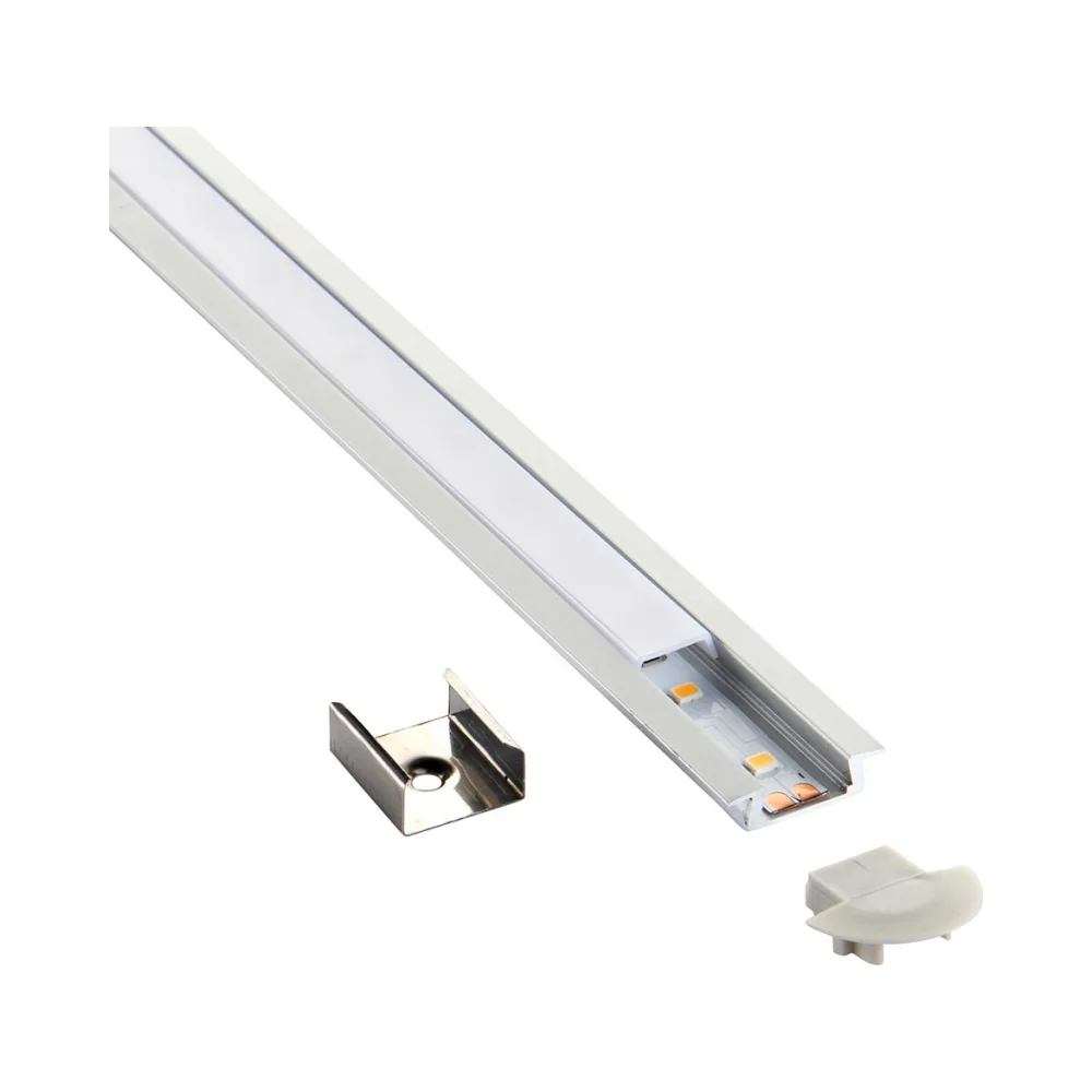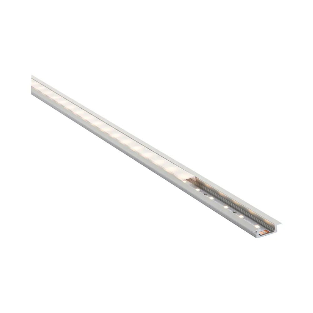 The RigelSLIM recessed is a slimline aluminium extrusion which benefits from having a push on polycarbonate diffuser. This profile can be easily recessed into any flat surface. The extrusion effectively conceals the LED tape and gives a softer lighting effect and adds an additional layer of protection to your LED Tape.