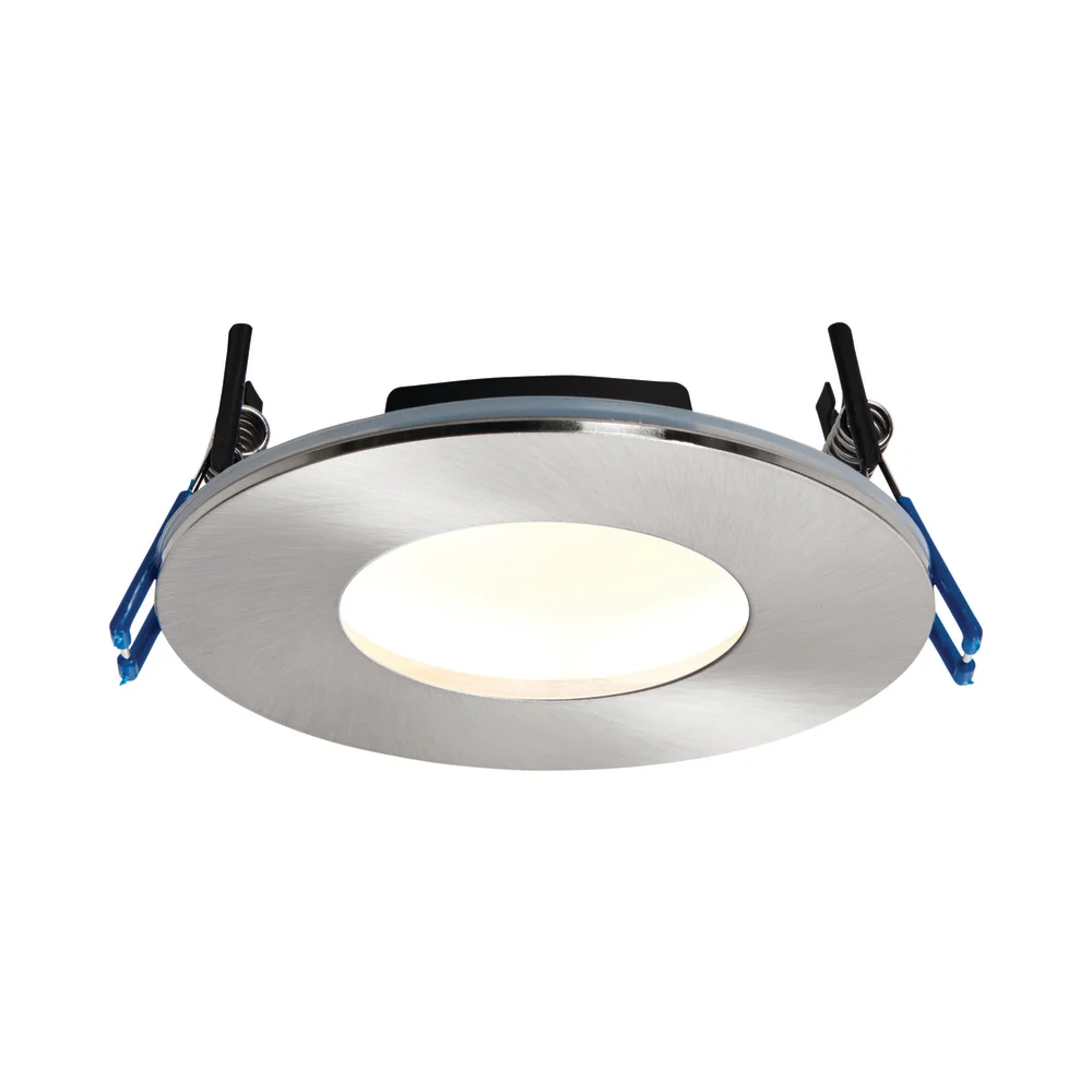 The OrbitalPlus family is a range of slimline recessed downlights which are fire rated and IP65 rated. It’s anti glare dome projects up to 460 lumens of warm or cool white light. This unique and patented design can be covered with insulation and fits into shallow ceiling voids. Supplied with a dimmable driver, it is available with warm white or cool white LEDs and in three finishes, satin nickel, chrome and matt white.