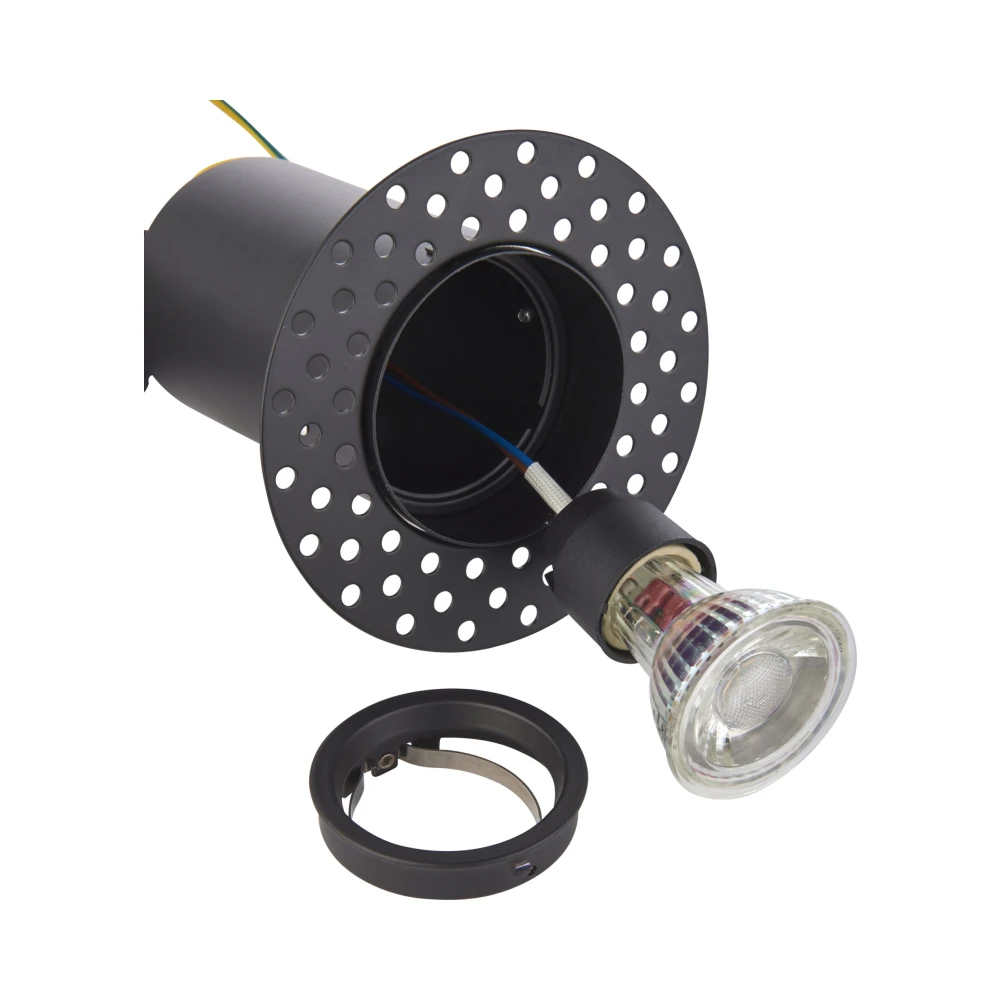 The Ravel fire rated trimless plaster-in luminaire conceals the downlight for a clean, seamless finish. Designed to be plastered into the ceiling during the early stages of a build, allowing for the GU10 to be fitted later. Fitting supplied complete with fast-fix loop-in loop-out connector box. The Ravel provides an ultra-modern way to illuminate a room giving clean lines and unobtrusive lighting.