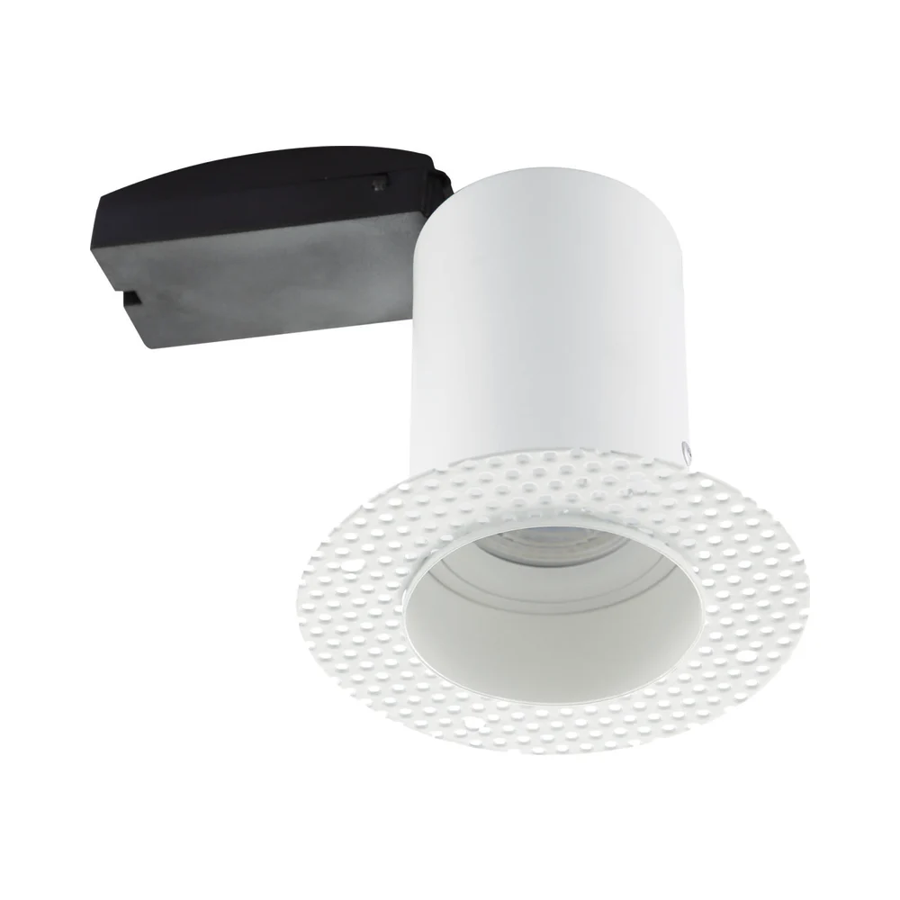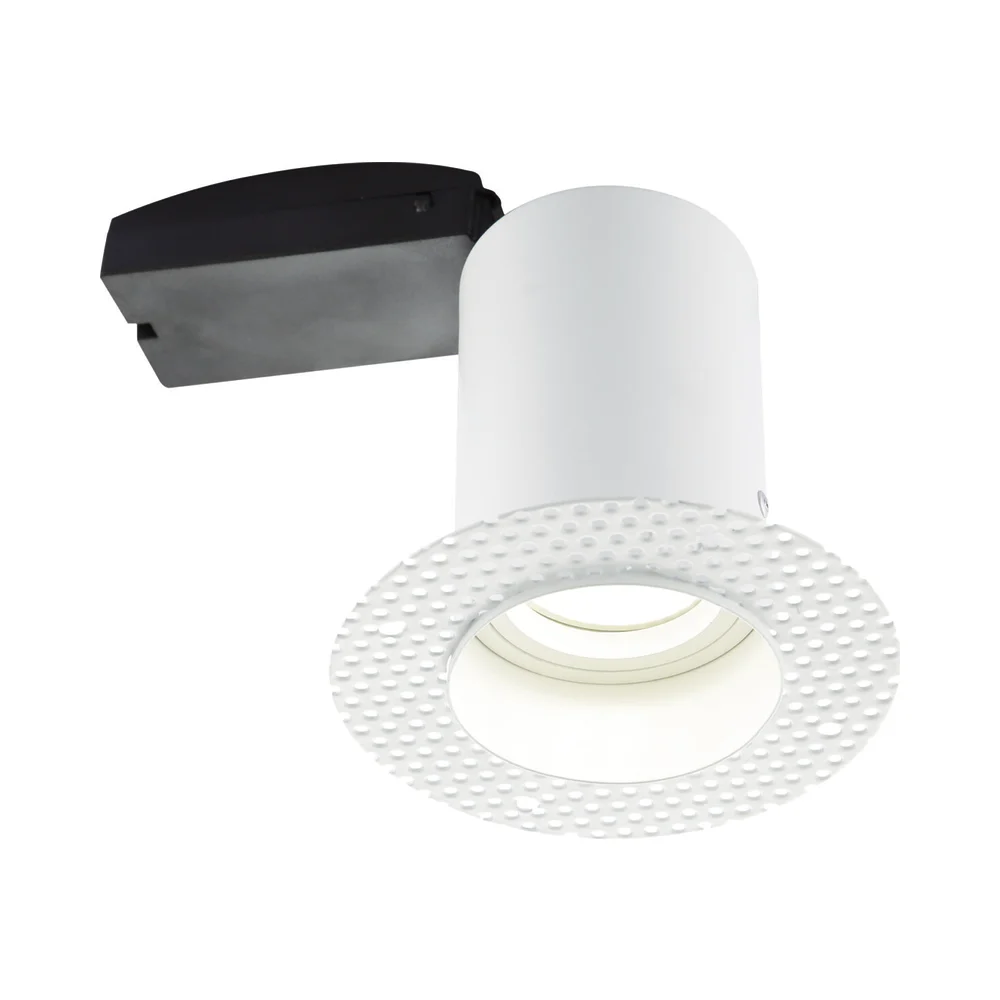 The Ravel fire rated trimless plaster-in luminaire conceals the downlight for a clean, seamless finish. Designed to be plastered into the ceiling during the early stages of a build, allowing for the GU10 to be fitted later. Fitting supplied complete with fast-fix loop-in loop-out connector box. The Ravel provides an ultra-modern way to illuminate a room giving clean lines and unobtrusive lighting.