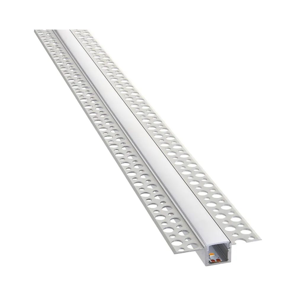 The Rigel Plaster-in Wide is an easy to install plaster-in extrusion profile which benefits from having a push on polycarbonate diffuser. It effectively conceals the LED tape and gives a softer lighting effect. Designed to be plastered into the ceiling or wall during the early stages of a build, allowing the LED tape to be fitted later. Also available in wide option.