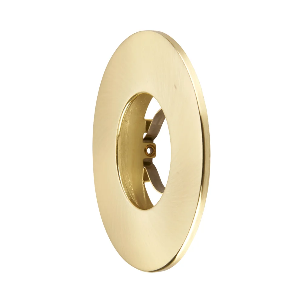 The Saxby ShieldONE 75 Fixed Saxby Shieldone 75 Fixed Satin Brass Bezel Bezel fits the ShieldONE 75 GU10 fixed downlight. Moreover, this version includes a clean satin brass finish finish that blends neatly into ceilings and adds a subtle modern touch. With a 92mm diameter and ultra-slim 3mm projection, it sits flush for a seamless look.