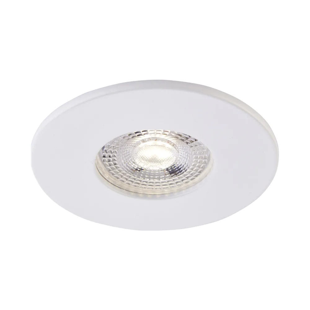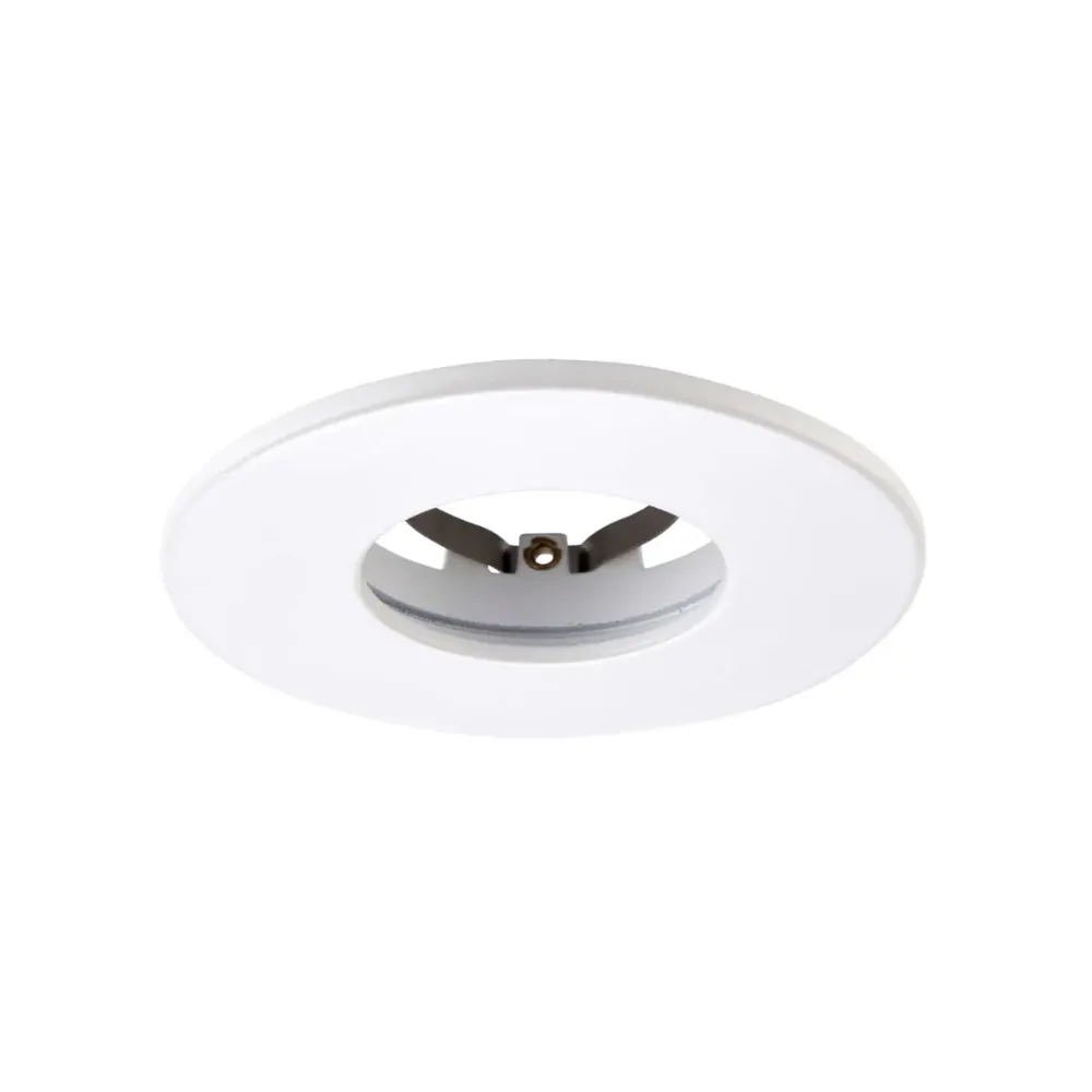 The Saxby ShieldONE 75 Fixed White Bezel fits the ShieldONE 75 GU10 fixed downlight. Moreover, this version includes a clean matt white paint finish that blends neatly into ceilings and adds a subtle modern touch. With a 92mm diameter and ultra-slim 3mm projection, it sits flush for a seamless look.
