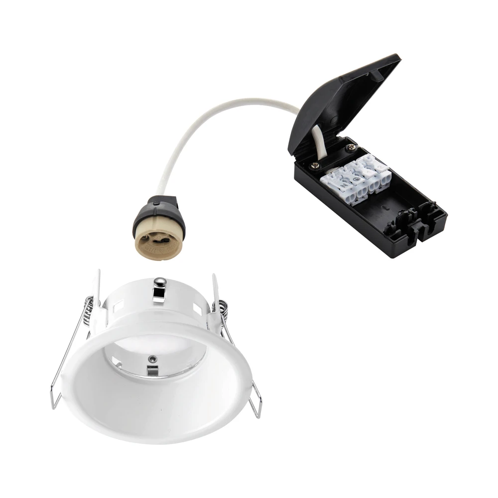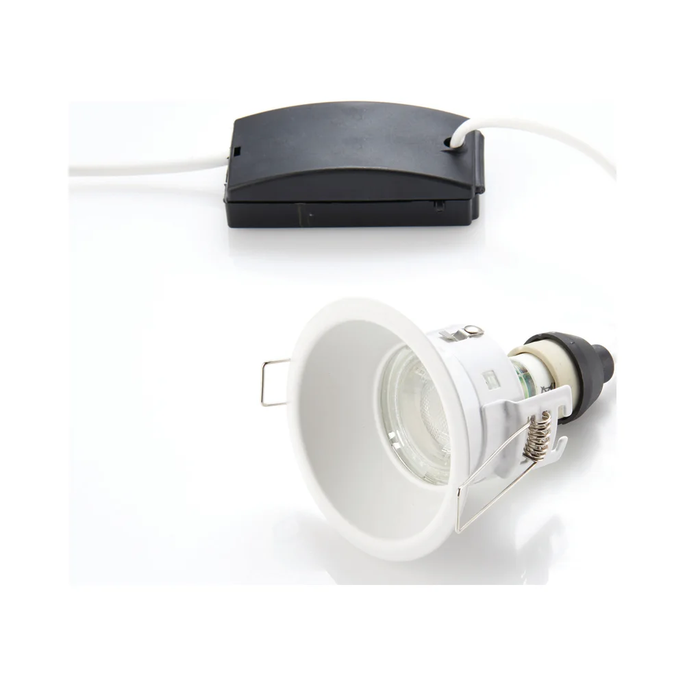 The Speculo range is a collection of compact, fire rated, LED downlights that are slim and boast a low profile design. Featuring fire rated glass, it differentiates itself from other downlights as the glass can withstand high temperatures without the need of a can at the back of the fitting. This anti-glare version is suitable with GU10 lamps or our Pacto module. Matt white finish.