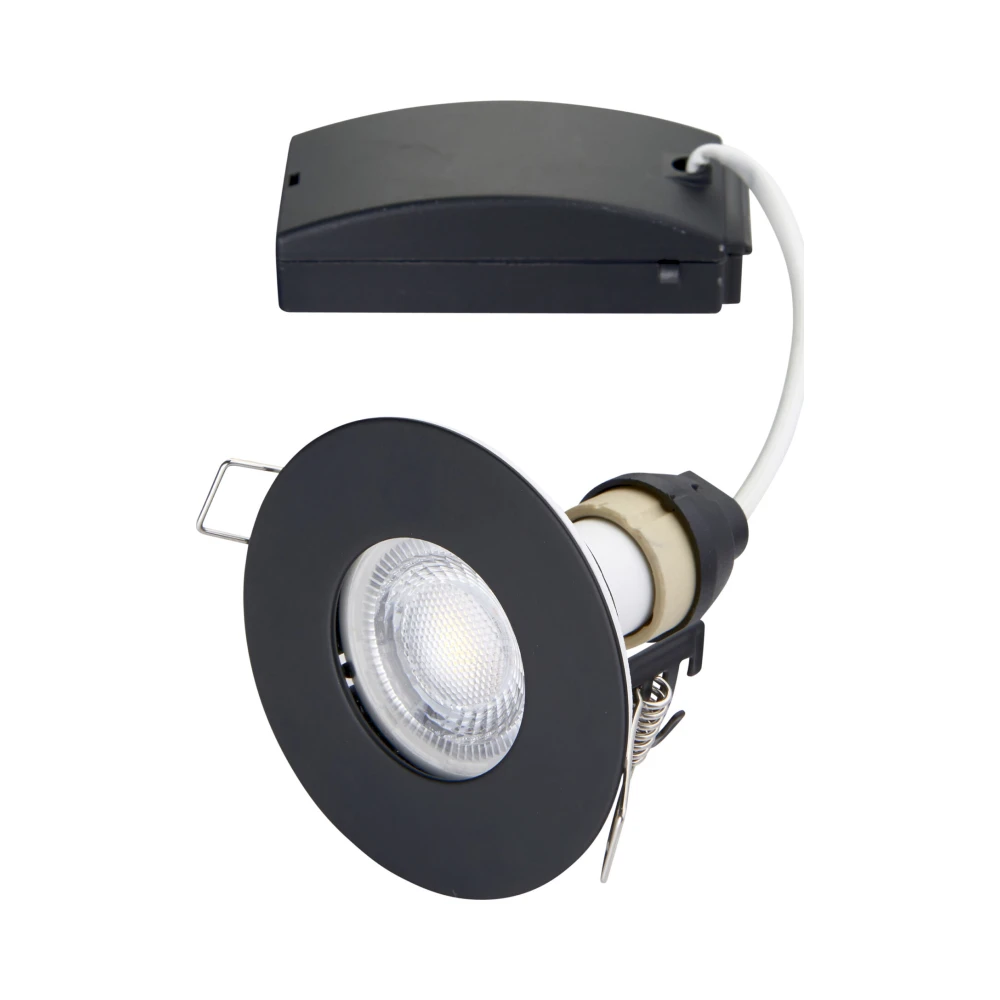The Speculo range is a collection of compact, fire rated, LED downlights that are slim and boast a low profile design. Featuring fire rated glass, it differentiates itself from other downlights as the glass can withstand high temperatures without the need of a can at the back of the fitting. Suitable with GU10 lamps. Matt black finish.