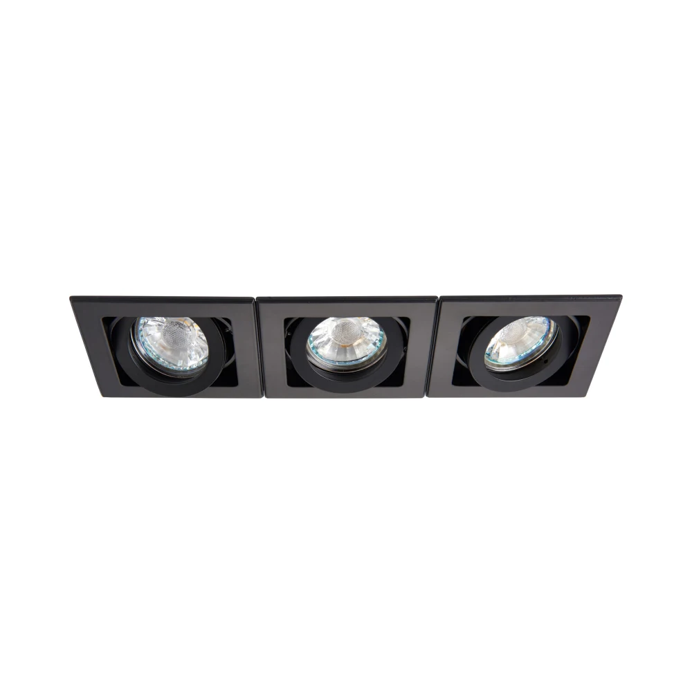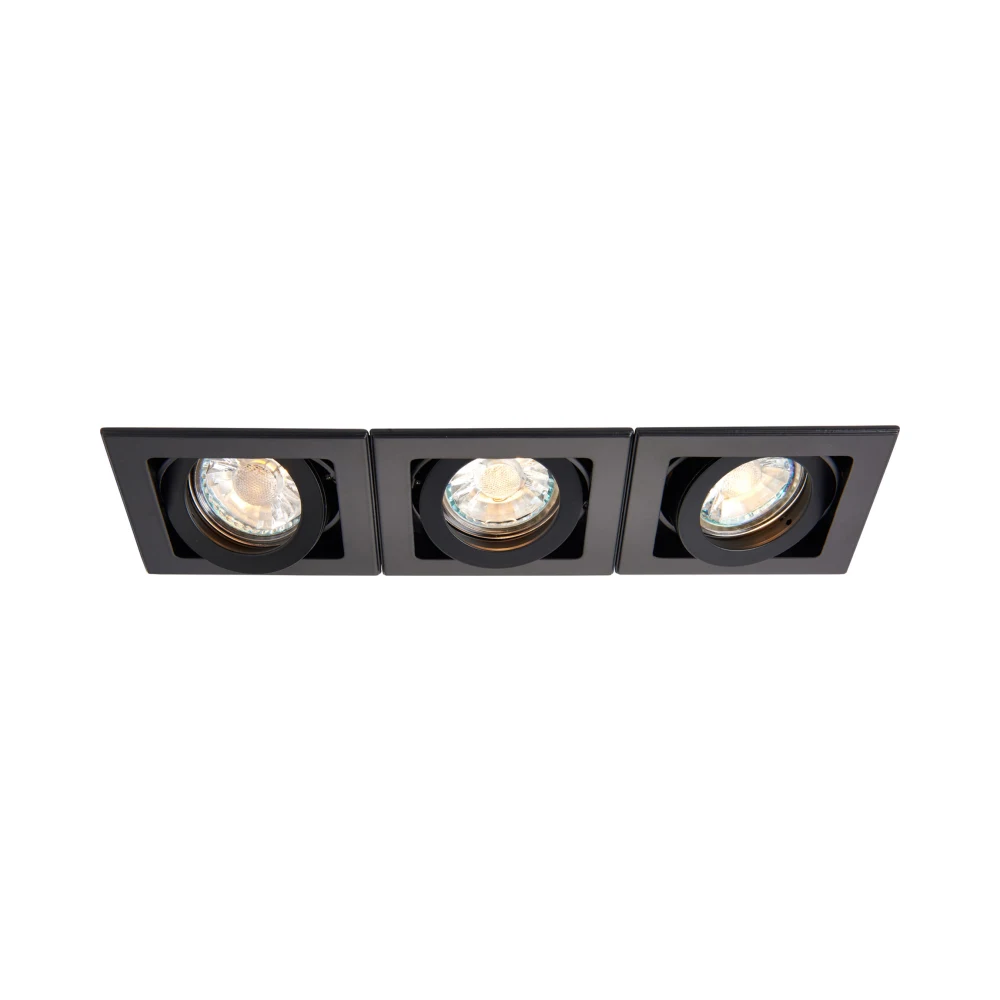 The Xeno is a range of recessed boxed downlights, this three light version can be adjusted to ensure precise light projection, with a clean and modern matt black finish. The Xeno is also available in matt white and aluminium.
