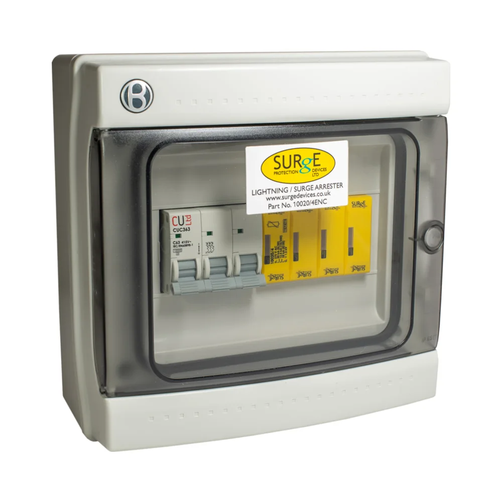 - Want an enclosure without an MCB? Choose the 10020/4ENC – Enclosed SPD with Visual Indication