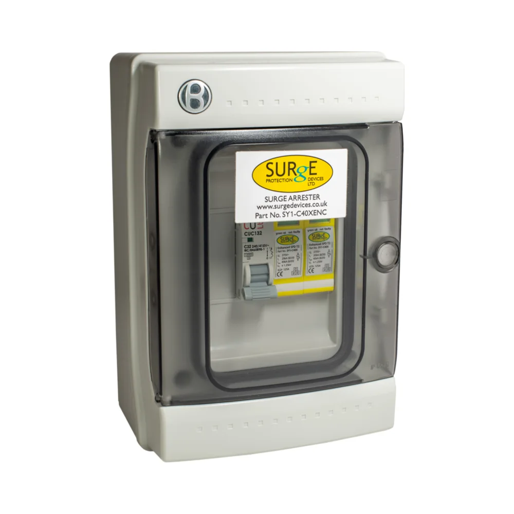 SY1-C40X/ENCM Single Phase Surge Protection Kit – Type 2+3 SPD with 32A MCB & IP65 Enclosure