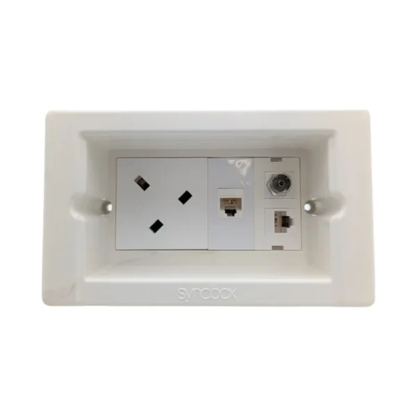 ConclusionChoose Syncbox Standard SB-004 for a hidden, customisable, and aesthetically pleasing solution to your home automation and media needs. This flush, recessed socket offers global compatibility and professional support, making it the perfect choice for modernising your home’s technical setup. Purchase from Electrical4Less, an authorised distributor, for a reliable and quality shopping experience.