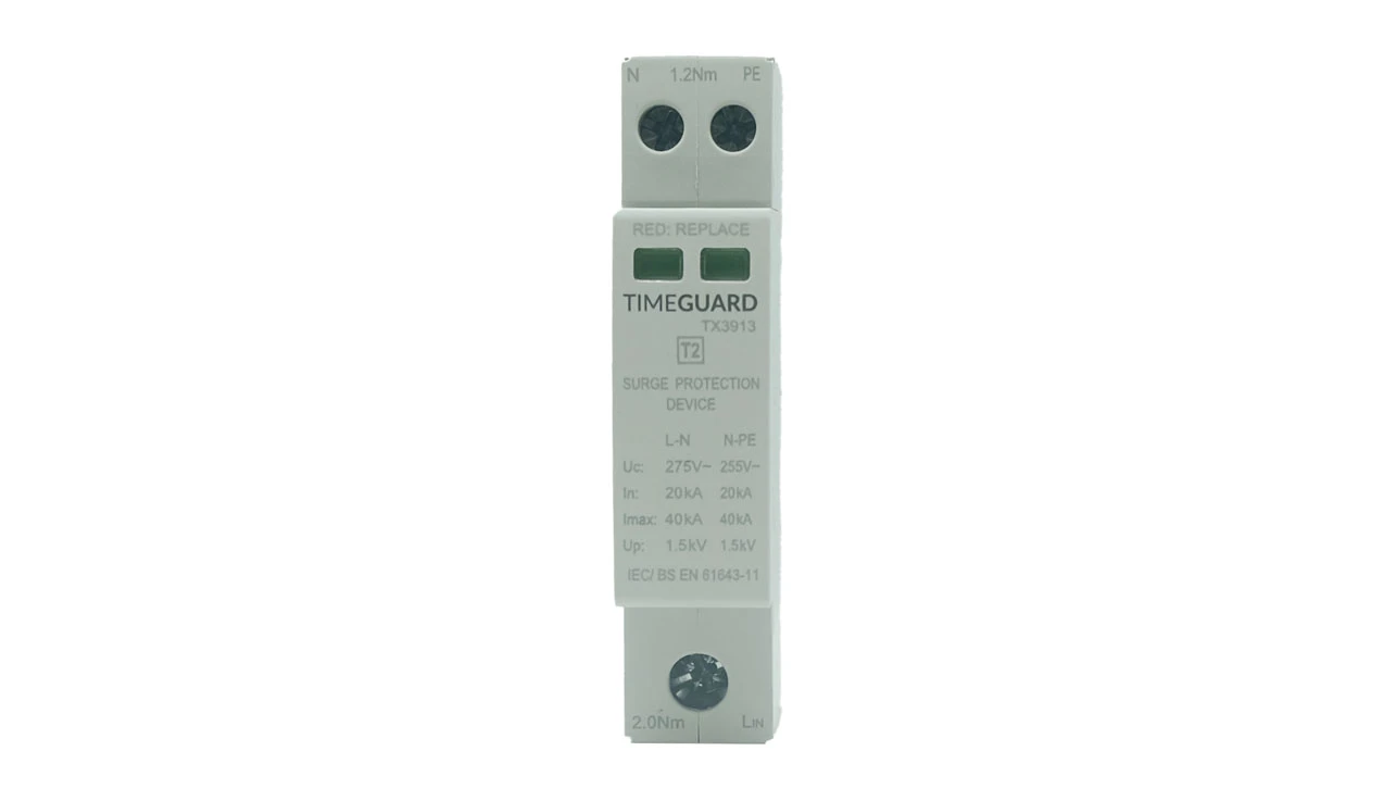 Compatible exclusively with Timeguard TX series consumer units, the TX3913 provides reliable surge protection while maintaining space efficiency and compliance with current wiring regulations.