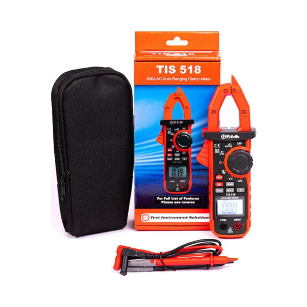 The TIS 518 AC Auto-Ranging Digital Clamp Meter is the latest addition to our range of high-performance clamp meters, designed to meet the needs of electricians and maintenance professionals. This versatile and easy-to-use tool provides accurate AC/DC voltage and AC current measurements, along with resistance, diode testing, and continuity checks.