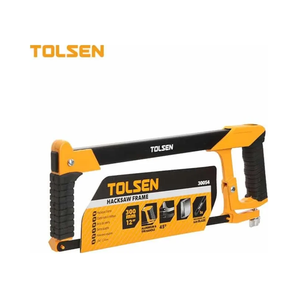 The Tolsen 30054 12 Inch Hacksaw Frame Industrial is designed for professional cutting of metal and plastic materials. The square lacquered steel tube bow frame provides strength and stability, while the aluminium and TPR handle ensures secure grip and user comfort during extended use.