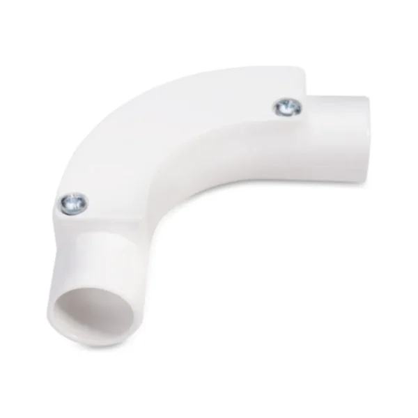 The Univolt LB25Wh 25mm White Inspection Bend is a 90° conduit bend with a removable cover, allowing easy access for cable pulling and inspection. Made from PVC-U with a white finish, it is designed for 25 mm rigid conduit systems in commercial and domestic installations.