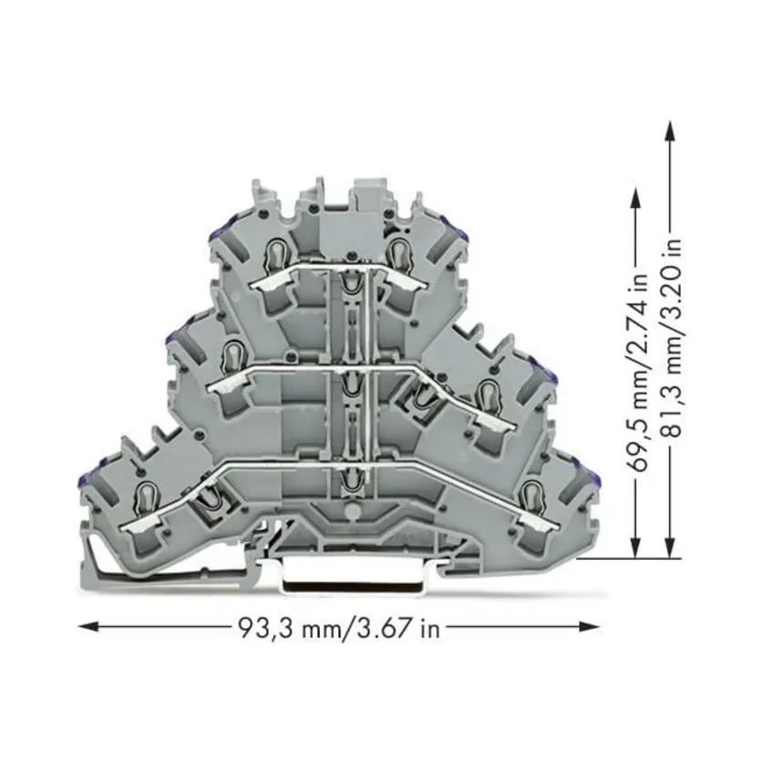 6-Conductor Through Triple-Deck Terminal Block – 2.5mm² Grey