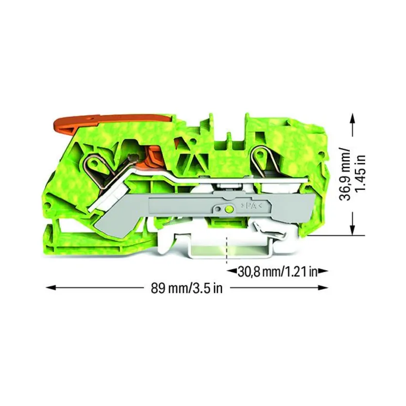 2-Conductor Ground Terminal Block with Lever and Push-In Cage Clamp – 10mm² Green-Yellow