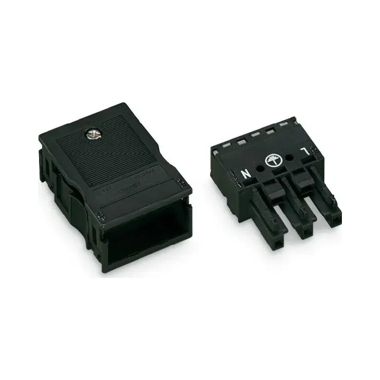 The Wago 770-103 Socket offers a robust solution for 3-pole electrical connections, with built-in strain relief housing for added durability. This socket is part of the WINSTA® series, which guarantees protection against mismating in various situations, providing peace of mind for installers.