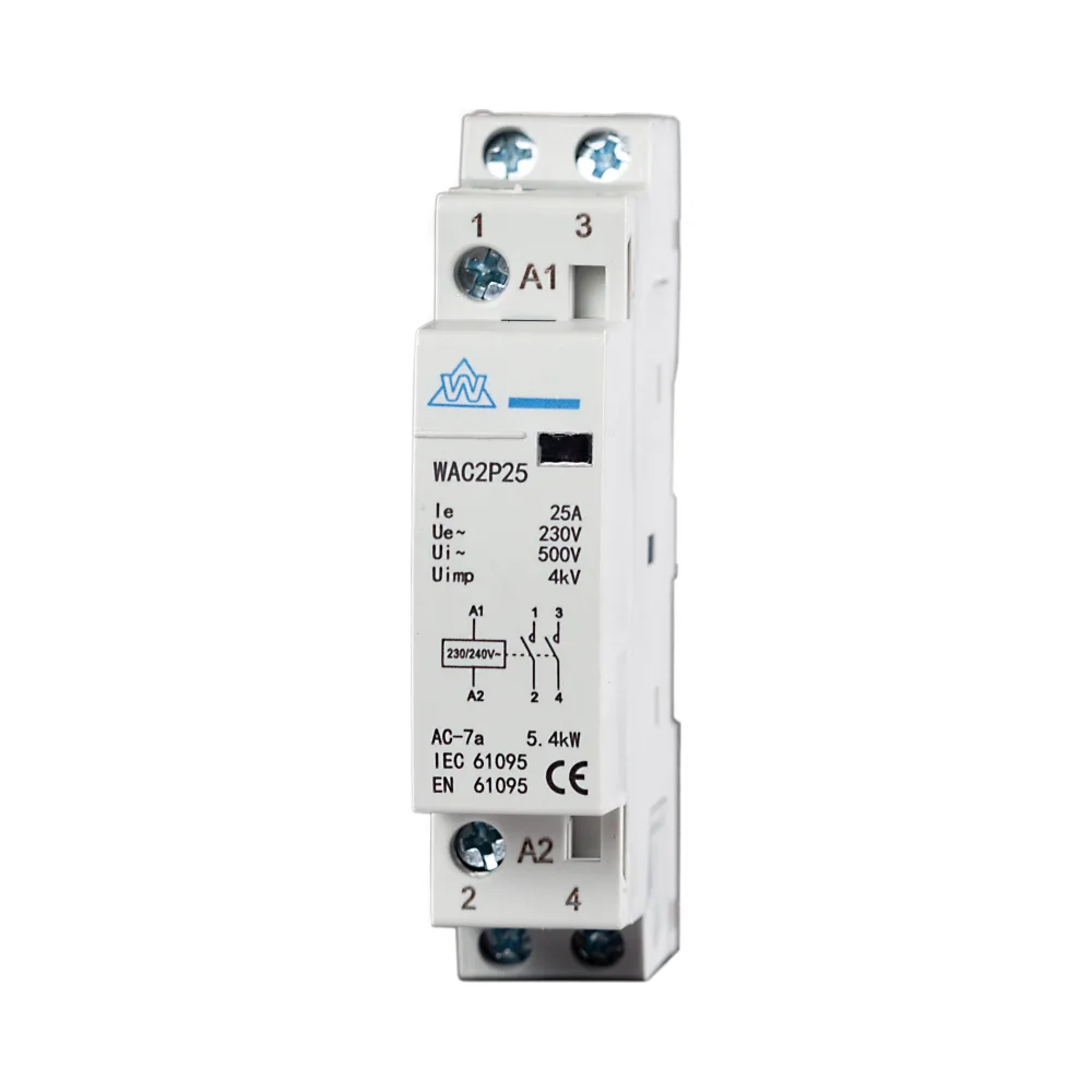 The WCED 2 Pole 25A Modular Contactor operates using an electromagnetic coil to manage electrical circuits:
