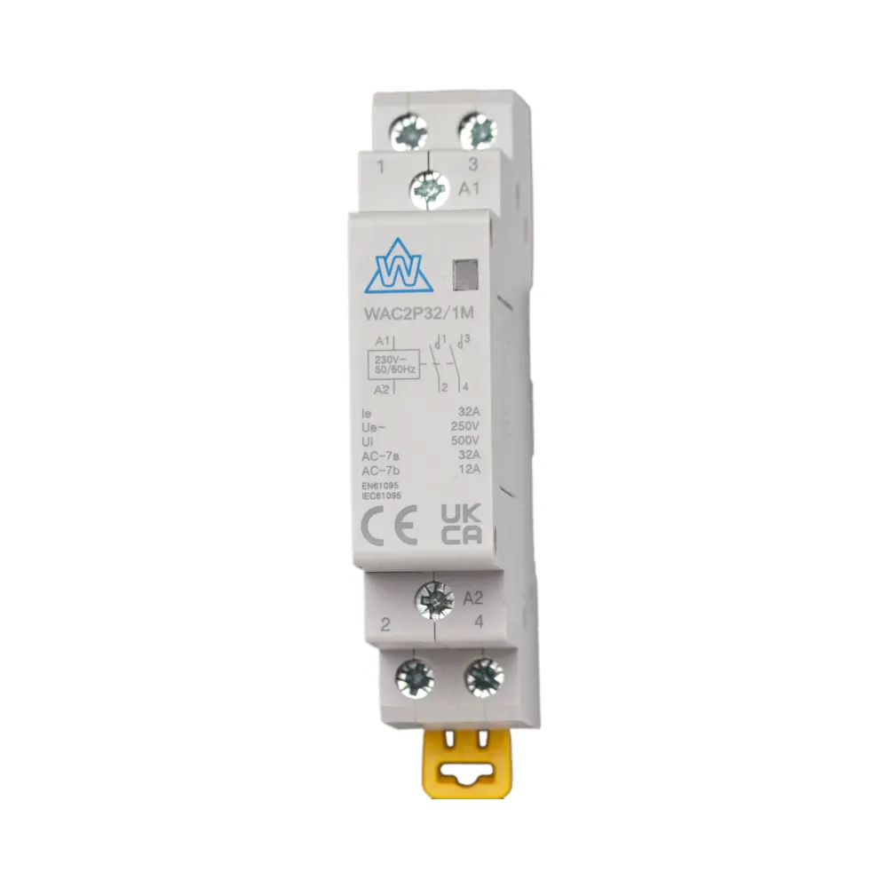 The WCED WAC2P32/1M 2 Pole 32A Normally Open AC Contactor is a compact and reliable solution for modular panels and enclosures. Designed with a focus on quiet operation, this contactor is ideal for use in environments where noise reduction is essential. Its compact design allows for easy integration within consumer units and modular enclosures, ensuring efficient and space-saving installations.
