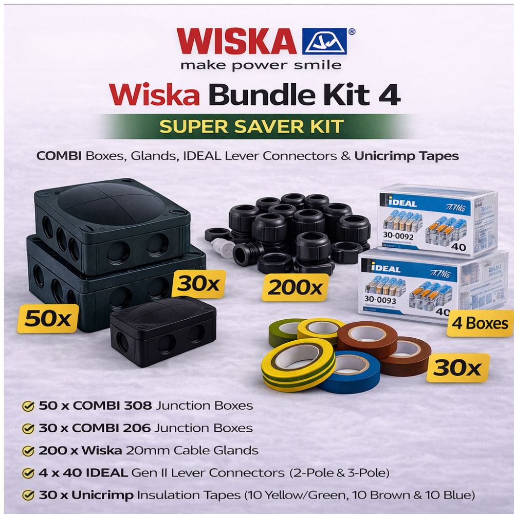 Wiska Bundle Kit 4 – Super Saver Kit – COMBI Boxes, Glands, IDEAL Lever Connectors & Unicrimp Tapes